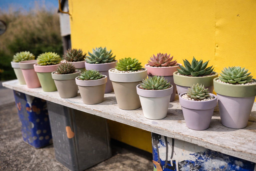 外壁塗装屋ならではの色使いで可愛いく楽しい植木鉢を作成しております😁