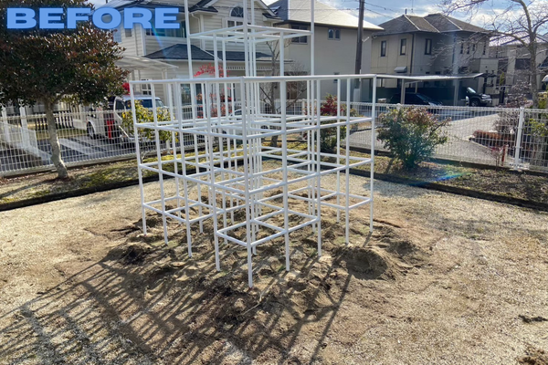 お客様のご要望:鉄部のサビや木部ラティスの塗料の剥がれが気になってキレイにしたいとのご要望